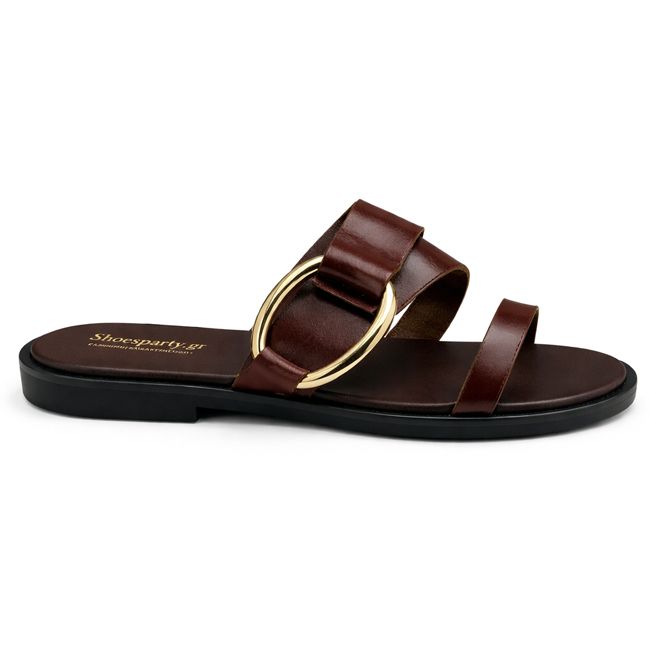 Σανδάλι με χρυσή διακόσμηση - Καφέ