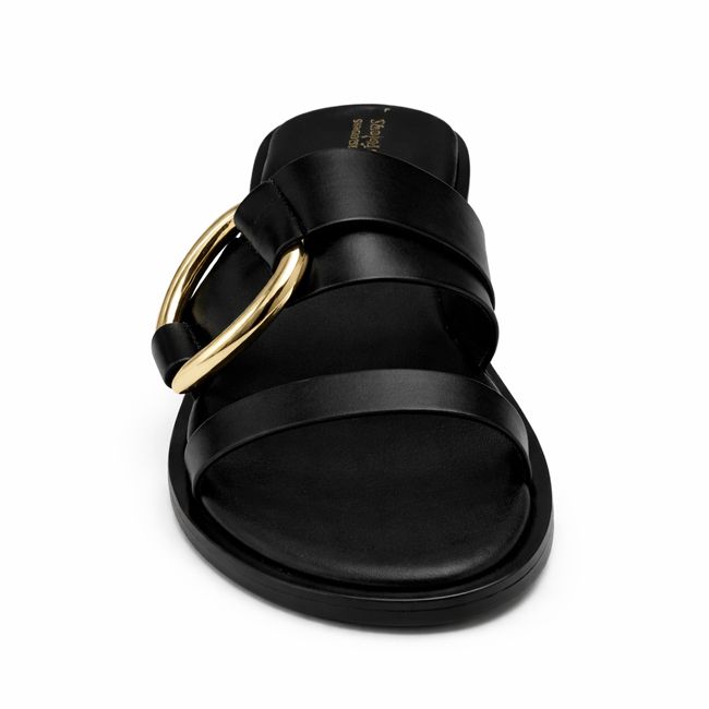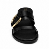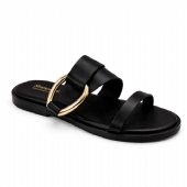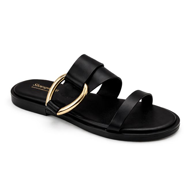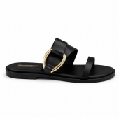Αναδείξτε το στυλ σας με αυτό το μαύρο σανδάλι, που ξεχωρίζει χάρη στη λαμπερή χρυσή διακόσμηση.