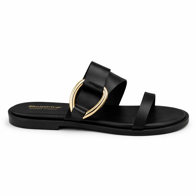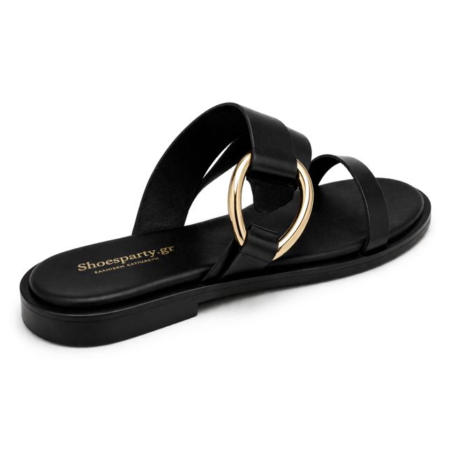Σανδάλι με χρυσή διακόσμηση - Μαύρο