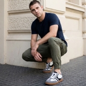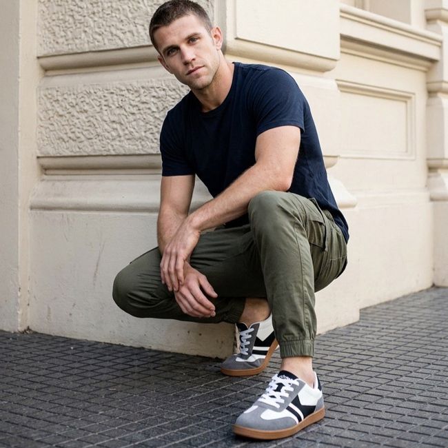 Ανανεώστε το στυλ σας με το ανδρικό sneaker περιπάτου σε γκρι απόχρωση με λευκές λεπτομέρειες και μπεζ σόλα.