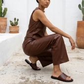 Γυναικείο σανδάλι με φάσα και δίχαλο - Καφέ