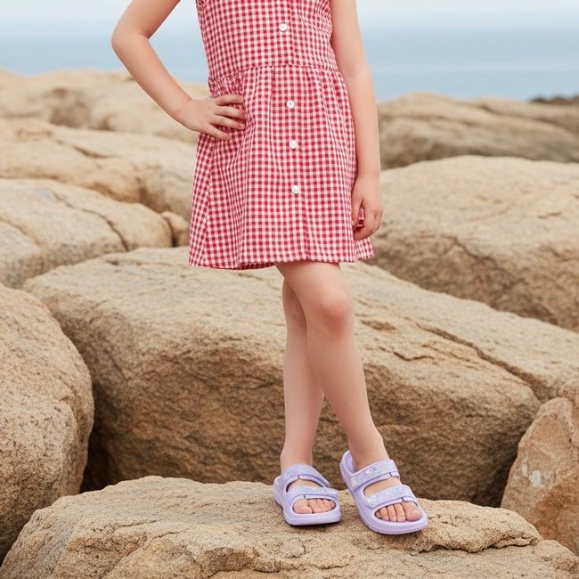 Ανακαλύψτε την παιδική σαγιονάρα με αυτοκόλλητο και παιχνιδιάρικα σχεδιάκια, που συνδυάζει άνεση και στυλ σε κάθε βήμα.