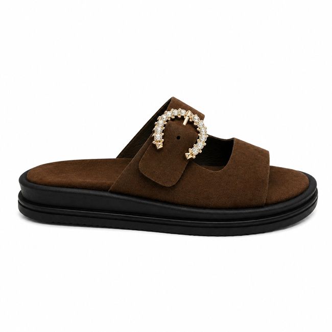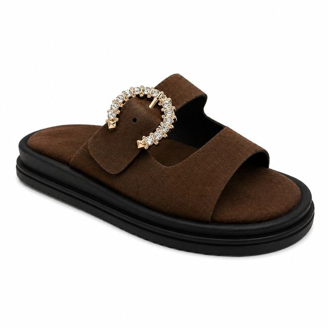 Σανδάλι πλατφόρμα με αγκράφα - Καφέ