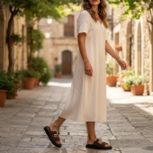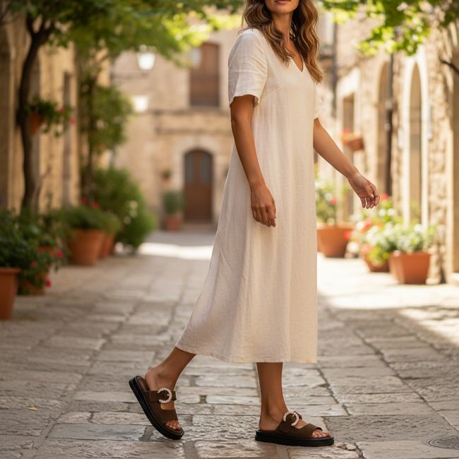Αναδείξτε το στυλ σας με αυτό το καφέ σανδάλι πλατφόρμα, που συνδυάζει κομψότητα και άνεση.