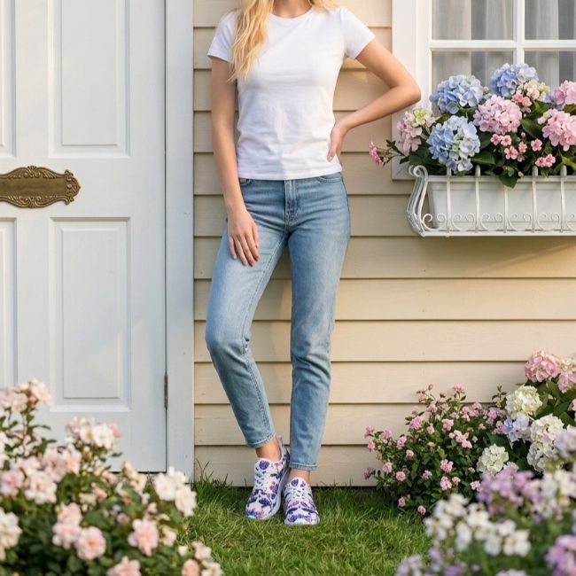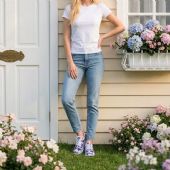 Γυναικείο αθλητικό low cut υπόδημα από συνθετικό, ανθεκτικό εμπριμέ ύφασμα και πολύ ελαφριά TRP λευκή σόλα.Χρώμα: Μπλε, Λευκό.