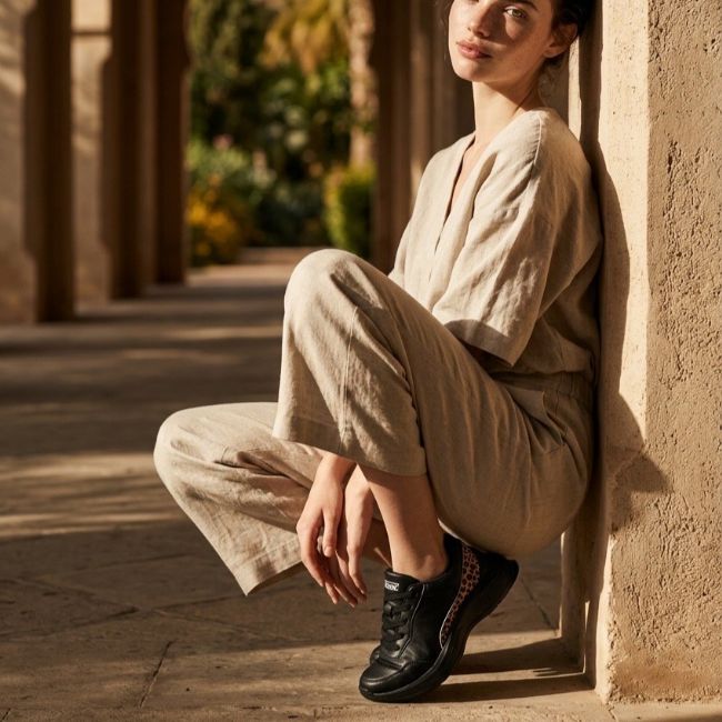 Γυναικείο αθλητικό υπόδημα με υπερυψωμένη σόλα, κορδόνια και λεπτομέρεια λεοπάρ στο πίσω μέρος. Δοκιμάστε το πιο μοδάτο sneaker της φετινής σεζόν!