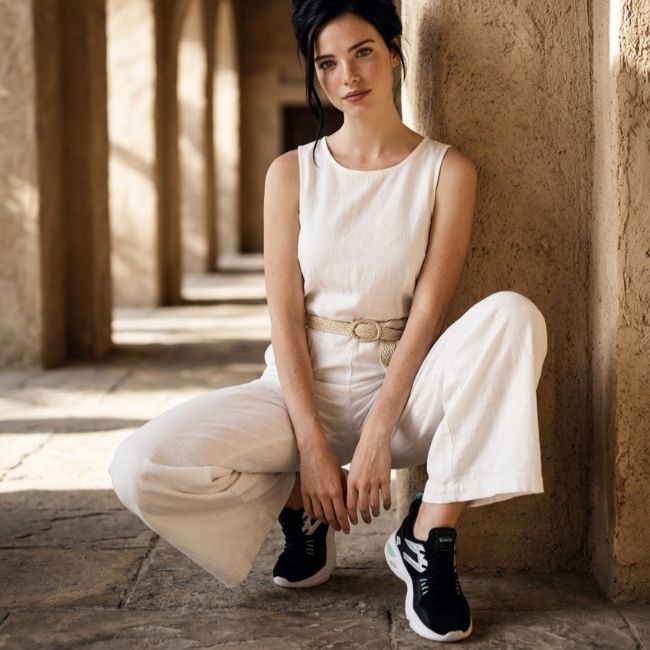 Γυναικείο αθλητικό υπόδημα με λευκή σόλα, κορδόνια καθώς και με βινύλ και τουρκουάζ λεπτομέρειες . Μία μοδάτη και συγχρόνως κομψή επιλογή που θα ενθουσιάσει.