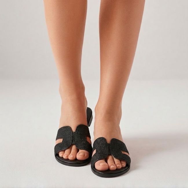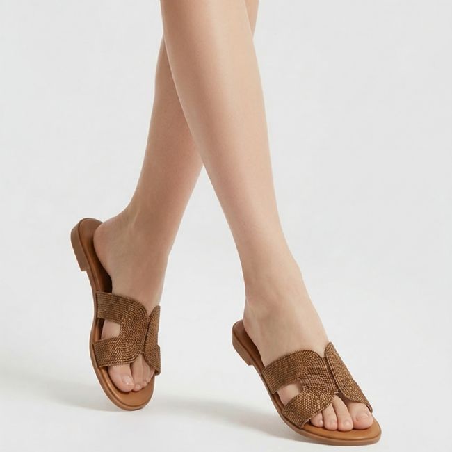 Σανδάλι flat με φάσα από μεταλλιζέ ψάθα και πολύ μαλακό πάτημα. Προσφέρει κομψότητα και άνεση κάθε στιγμή.