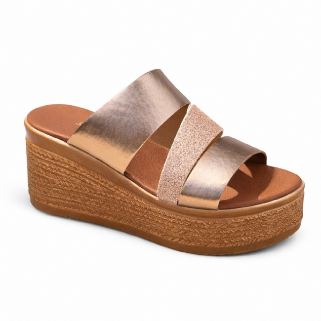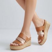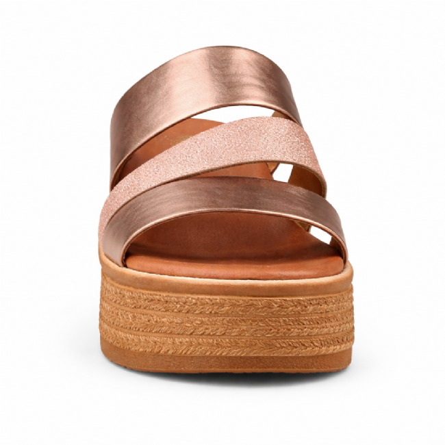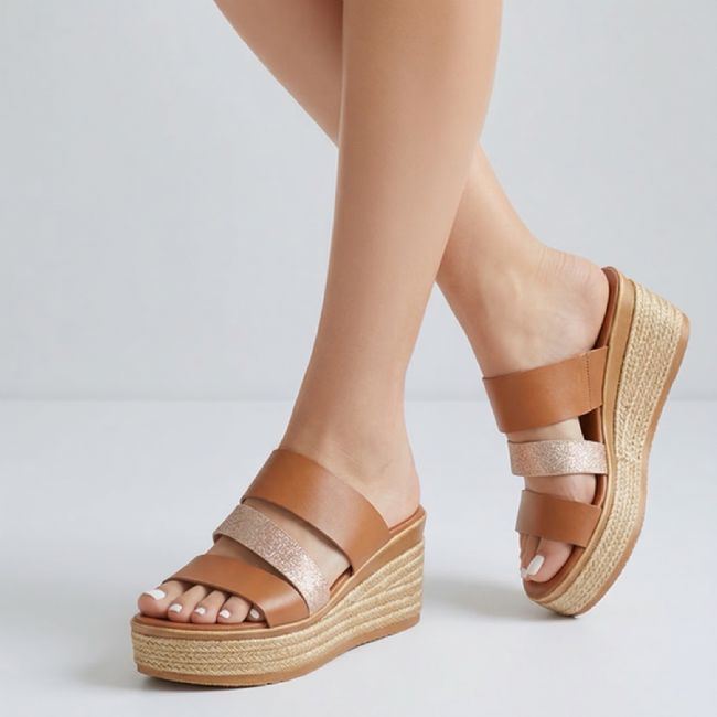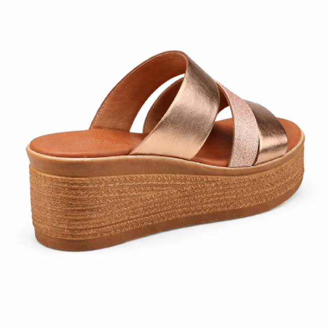 Δερμάτινη mule πλατφόρμα με τρεις φάσες. Σόλα από συνθετικό υλικό με σχοίνινο μοτίβο.