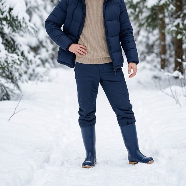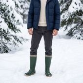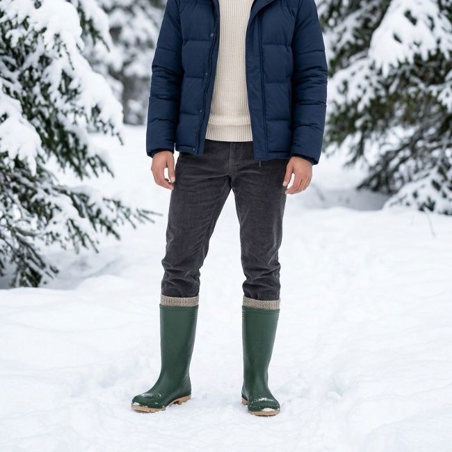 Ανδρική γαλότσα μονόχρωμη με μπεζ σόλα.Υλικό: Συνθετικό.Φόρμα: Κανονική.Ύψος τακουνιού: 3 εκ.Συνολικό ύψος μπότας: 36,5 εκ.Περίμετρος: 38 εκ.Χρώματα: Λαδί, Μπλε.