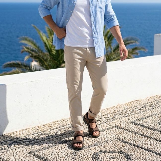 Ανδρικό τουριστικό πέδιλο με με αυτοκόλλητα ανοίγματα για άνεση στην εφαρμογή.