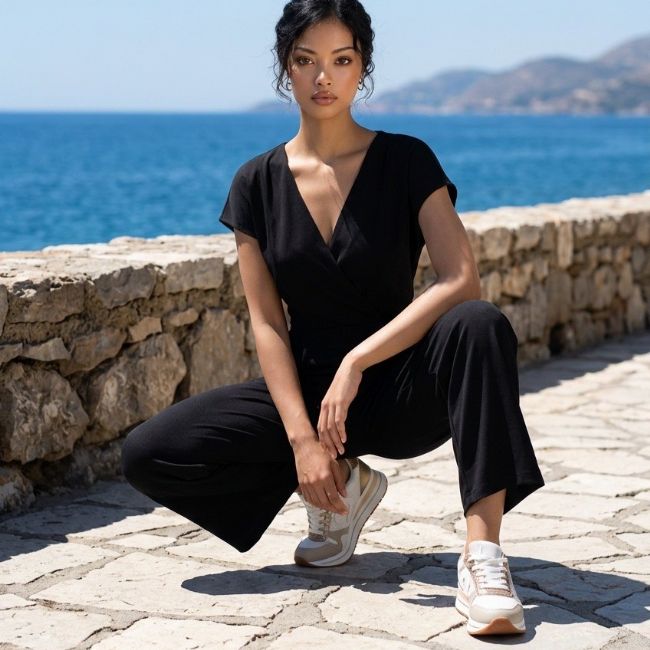 Γυναικείο αθλητικό υπόδημα με κορδόνια, ενισχυμένη σόλα και χρυσή διακόσμηση.