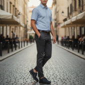 Ανδρικό μοκασίνι με κορδόνια - Mitsuko - Μαύρο