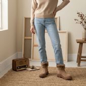 Γυναικείο μποτάκι με διακοσμητική γούνα - Mitsuko - Μπεζ