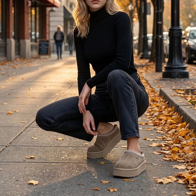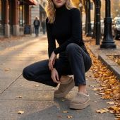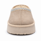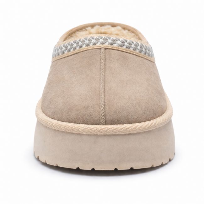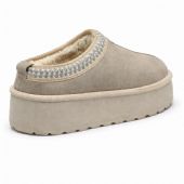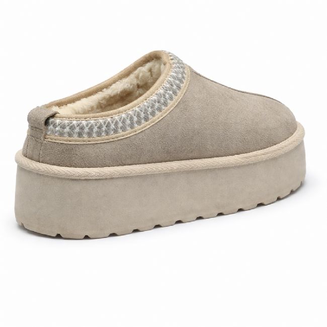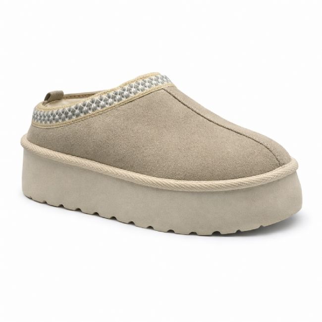 Παντόφλα μποτάκι flatform με ζεστή γούνινη επένδυση και υλικό τύπου σουέτ. Διαθέτει τρακτερωτή σόλα και διακοσμητική τρέσα γύρω από τον αστράγαλο.