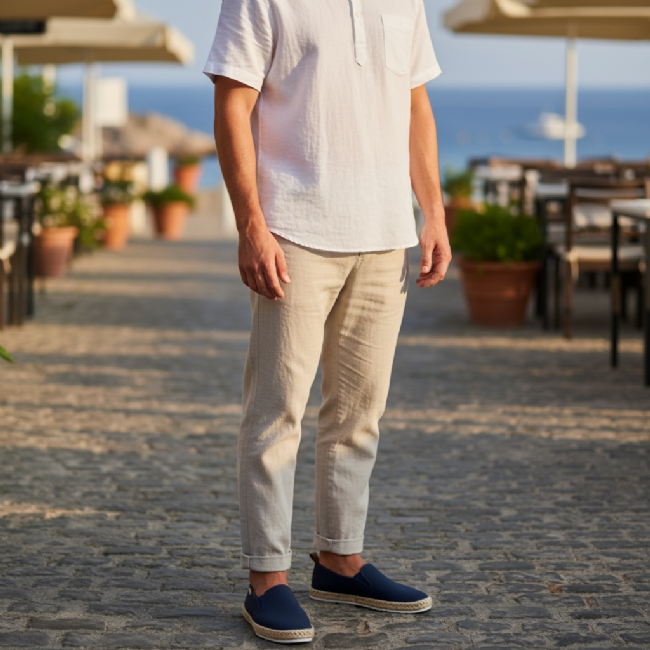 Ανδρικό μοκασίνι εσπαντρίγια με λάστιχα στα πλαϊνά για εύκολη εφαρμογή. Διαθέτει μαξιλαράκι στο πέλμα για άνεση στο πάτημα.