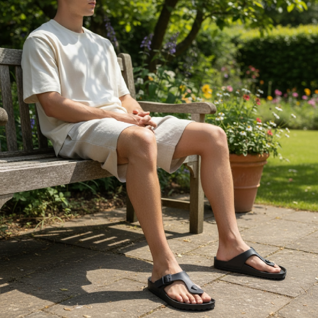 Ανδρική σαγιονάρα μονόχρωμη δίχαλη - Mitsuko - Μαύρο