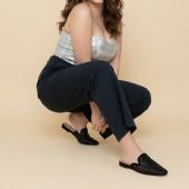 Γυναικεία flat mule τρυπητή γόβα με διακριτικά strass. Διαθέτει μαλακό πέλμα και επένδυση από διάφανη φόδρα.Υλικό: ΣυνθετικόΦόρμα: ΚανονικήΧρώμα: Μαύρο