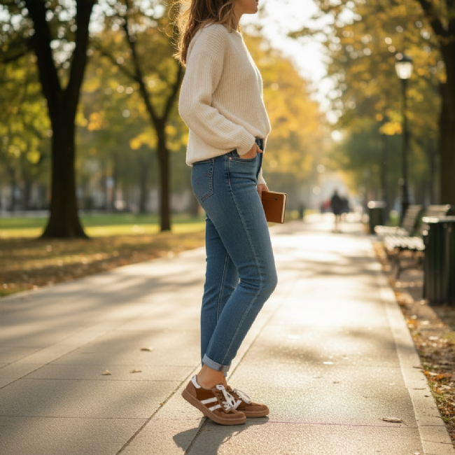 Αναδείξτε το στυλ σας με αυτό το μοναδικό γυναικείο αθλητικό σε καφέ απόχρωση με μπεζ σόλα.