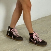 Ανανεώστε το στυλ σας με αυτό το γυναικείο αθλητικό μποτάκι σε καφέ απόχρωση και μοντέρνες ροζ λεπτομέρειες.
