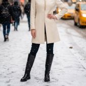 Αναδείξτε το στυλ σας με τη μαύρη γυναικεία μπότα με αγκράφα και χαμηλό τετράγωνο τακούνι.