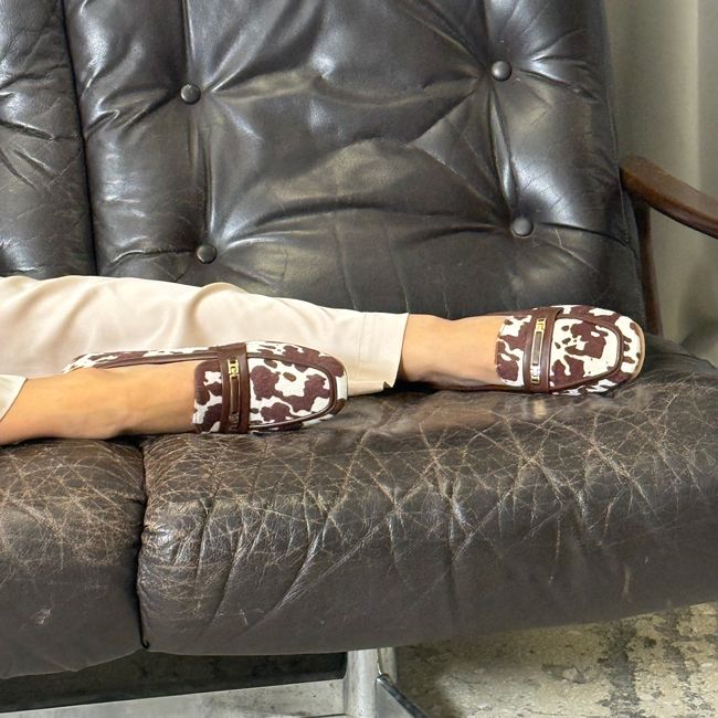 Ανανεώστε το στυλ σας με αυτό το μοναδικό γυναικείο μοκασίνι animal print σε cow καφέ απόχρωση.