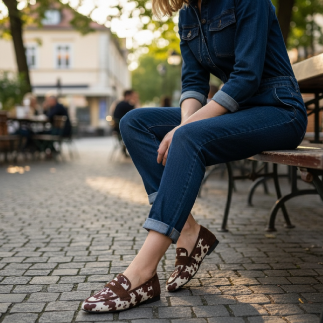 Αναδείξτε το στυλ σας με αυτό το γυναικείο μοκασίνι σε μοναδικό cow καφέ χρώμα.