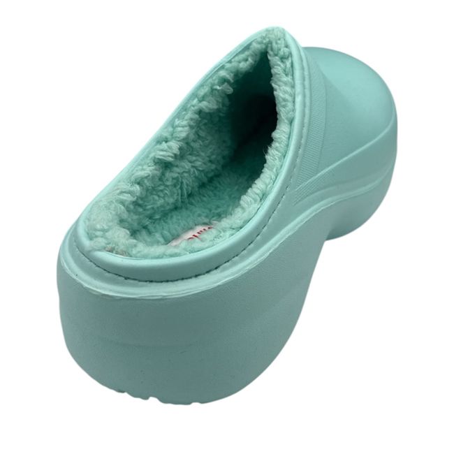 Ανακάλυψε τη μοναδική άνεση της γυναικείας παντόφλας σαμπό σε χρώμα μέντα με απαλή γούνινη επένδυση.
