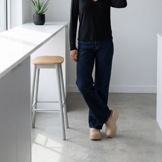Ανακάλυψε τη μοναδική άνεση της γυναικείας παντόφλας σαμπό σε εκρού χρώμα με απαλή γούνινη επένδυση.