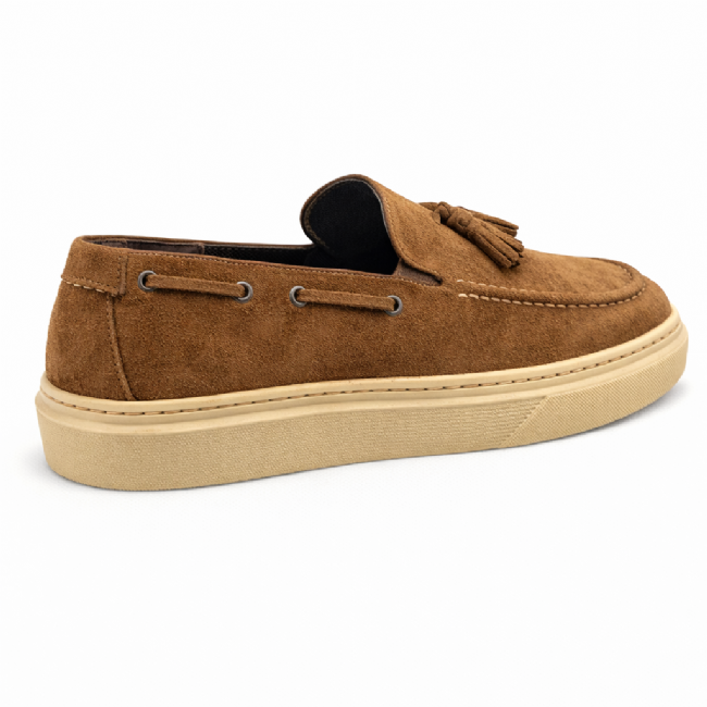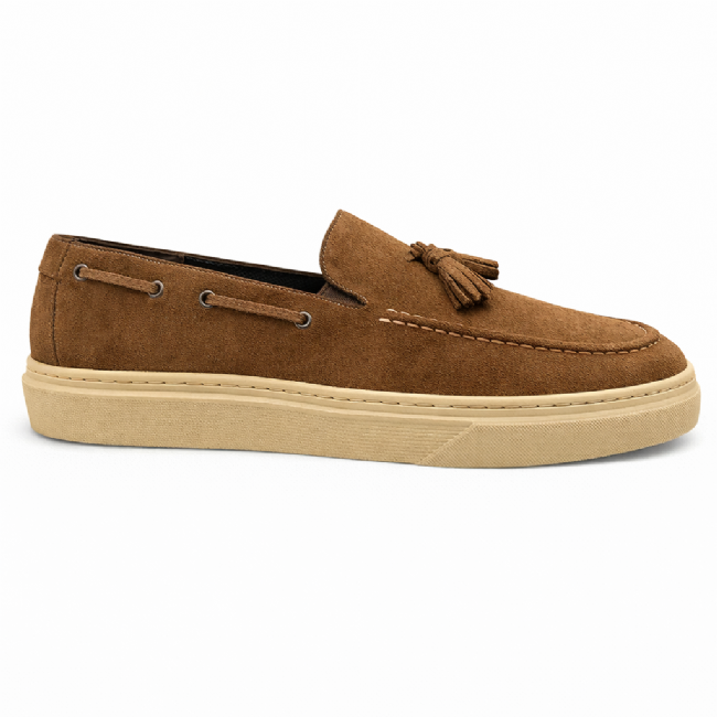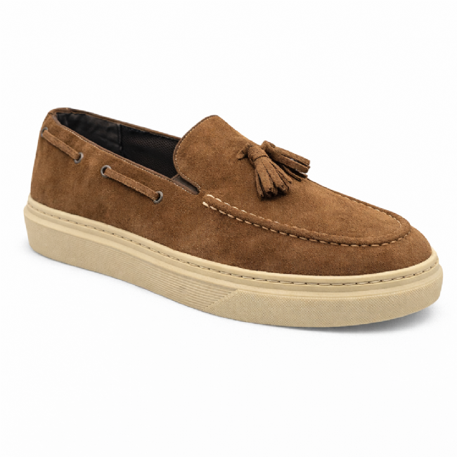 Αναδείξτε το στυλ σας με αυτό το ανδρικό μοκασίνι σε καφέ απόχρωση, φτιαγμένο από ποιοτικό συνθετικό υλικό τύπου σουέτ.