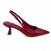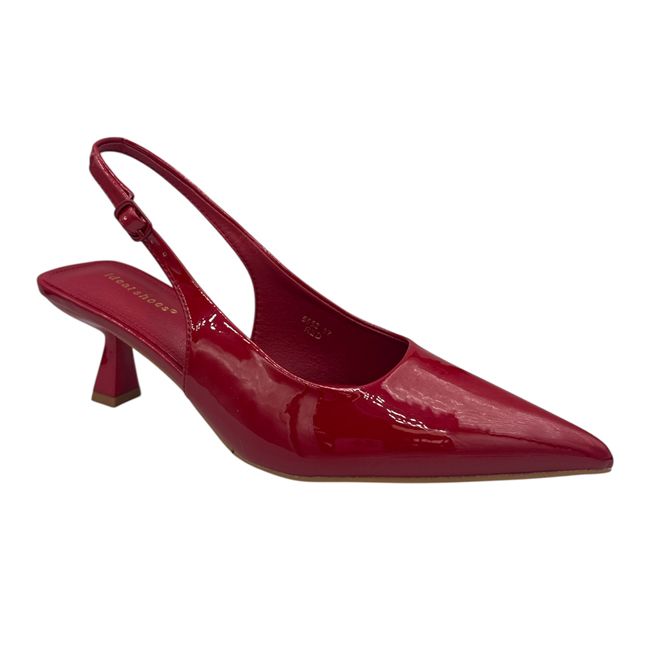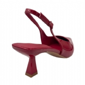 Αναδείξτε το στυλ σας με αυτήν τη λαμπερή κόκκινη γόβα λουστρίνι με λουράκι που δένει κομψά πίσω από τον αστράγαλο.