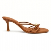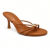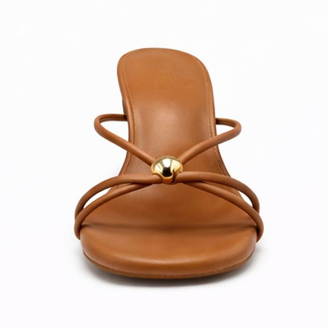 Αναδείξτε το στυλ σας με αυτό το κομψό πέδιλο σε κάμελ απόχρωση και χρυσή λεπτομέρεια.