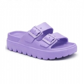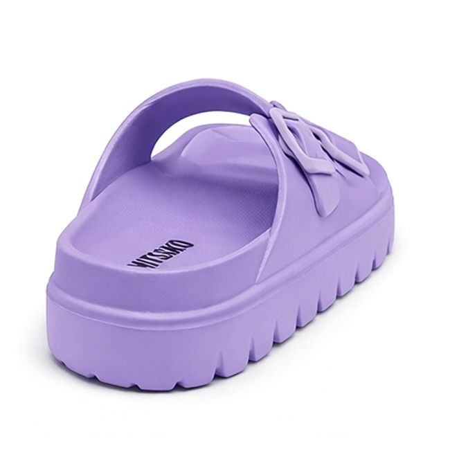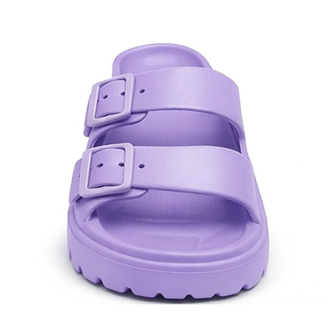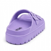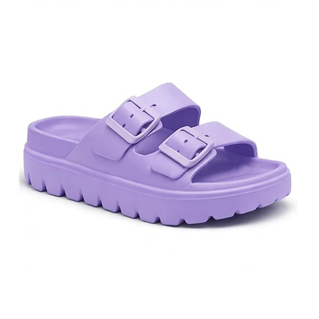 Ανανεώστε το καλοκαιρινό σας στυλ με τη μοντέρνα flatform σαγιονάρα σε ζωντανό λιλά χρώμα.